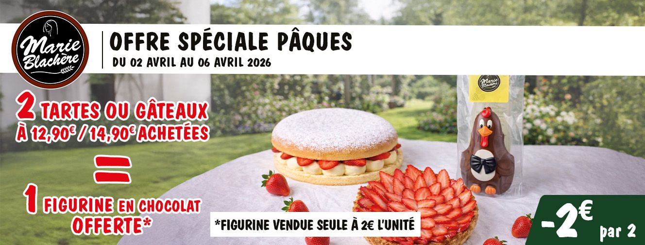 Marie Blachère, c'est le bon produit au bon prix. Découvrez notre large sélection de pains, snackings, viennoiseries et tartes, élaborés avec soin pour allier qualité et gourmandise. Chaque jour, nous vous proposons des produits savoureux, préparés avec exigence. Notre baguette Marie Blachère est réalisée avec une farine de blé 100% français, symbole de notre savoir-faire. Venez goûter à l'authenticité de nos créations à prix doux et profitez toute l'année de notre offre 3+1 et de -50% de réduction sur une sélection de produits lors des 30 dernières minutes d'ouverture pour encore plus de délices.
